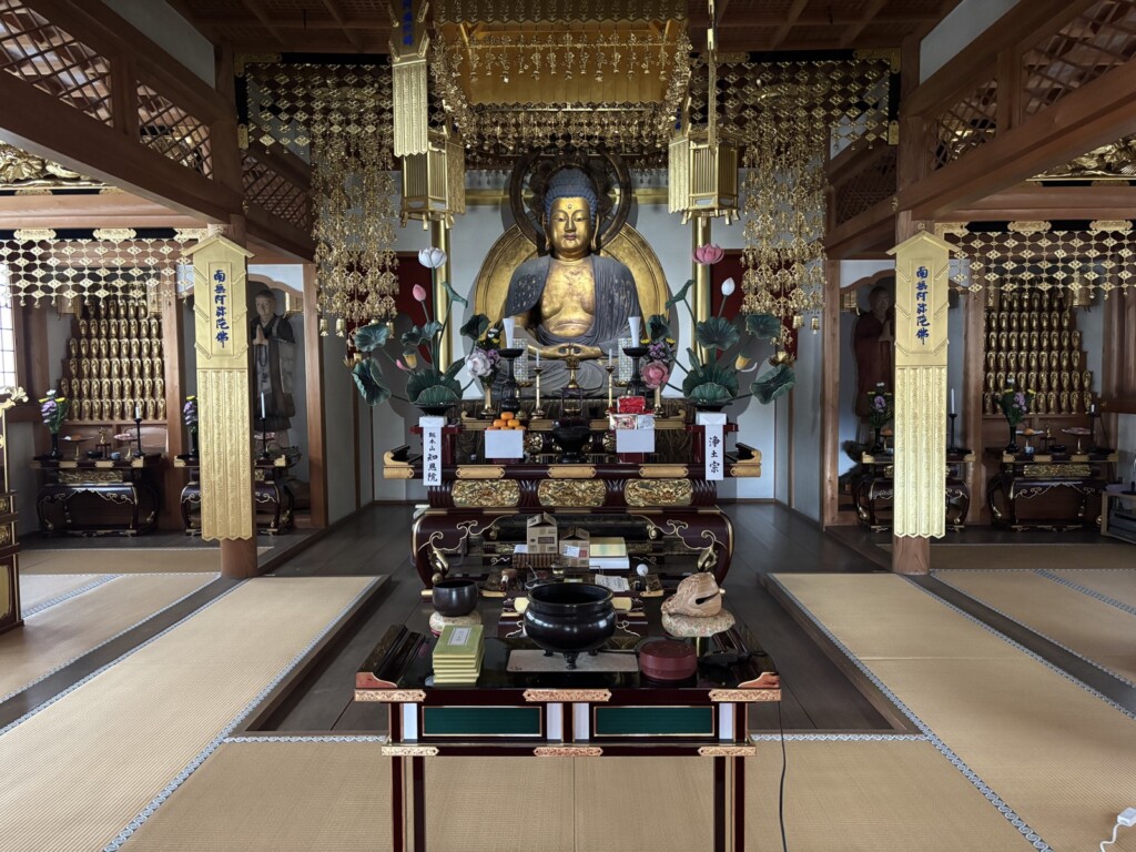 法要の念仏一会では電気を消して20分間集中してお念仏しました。終了後、甘いぜんざいを食べて英気を養いました。