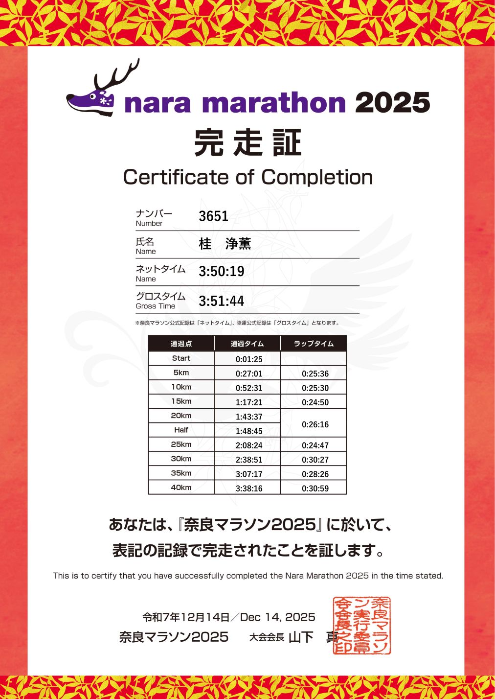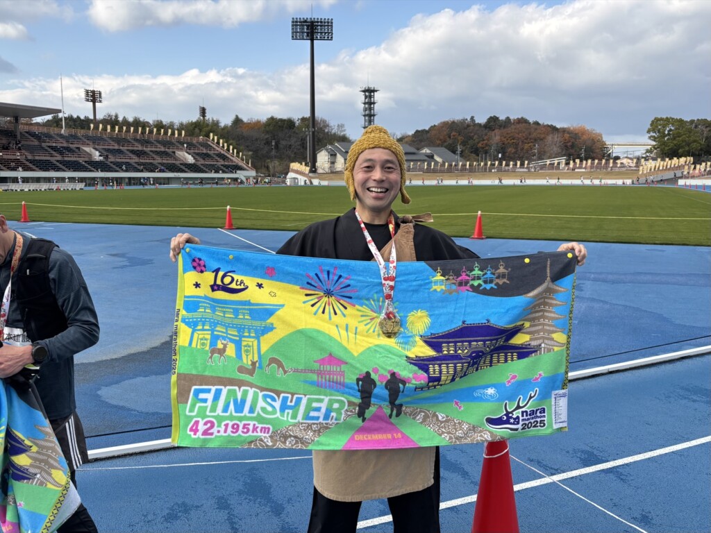 12月14日、恒例の奈良マラソンを完走しました。前年の記録から1分縮め、コースベストを更新できました。